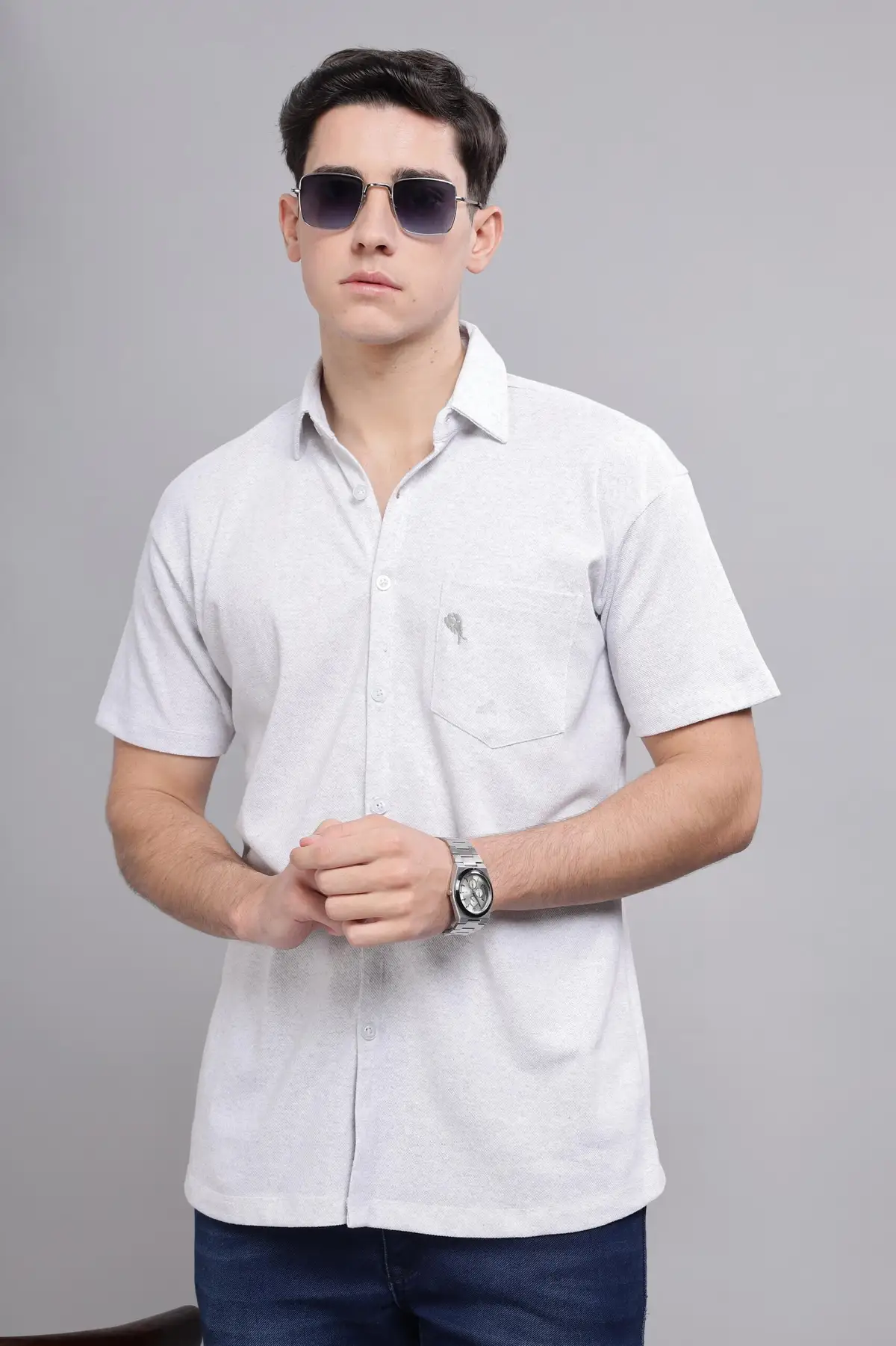 Silver Shirt || Half Sleeve || 100% Cotton